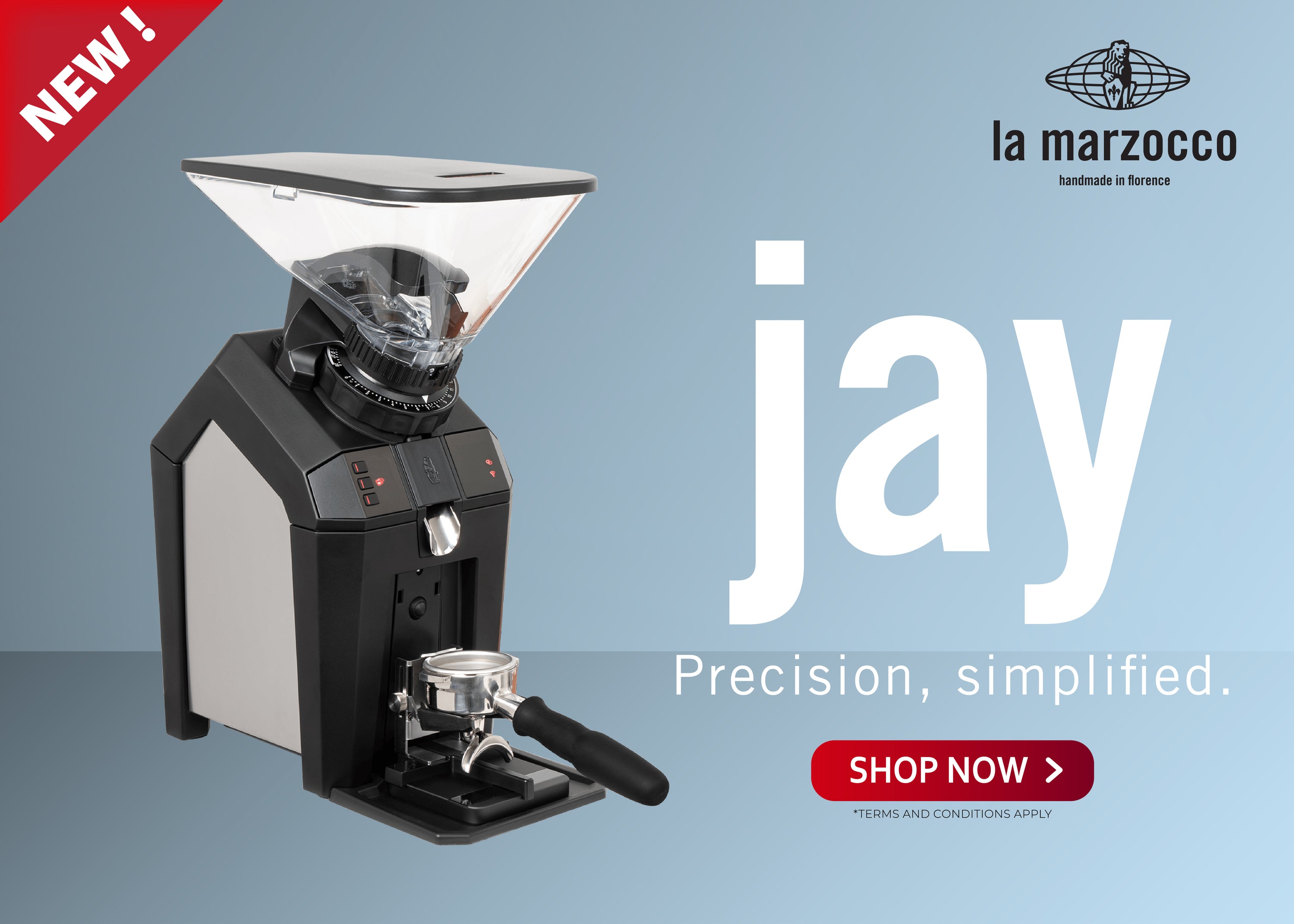 Combined with an intuitive interface for easy programming and use, a patented burr alignment system, and smart connectivity for grind-by-weight accuracy, Jay quickly delivers exceptional consistency and quality in every shot.